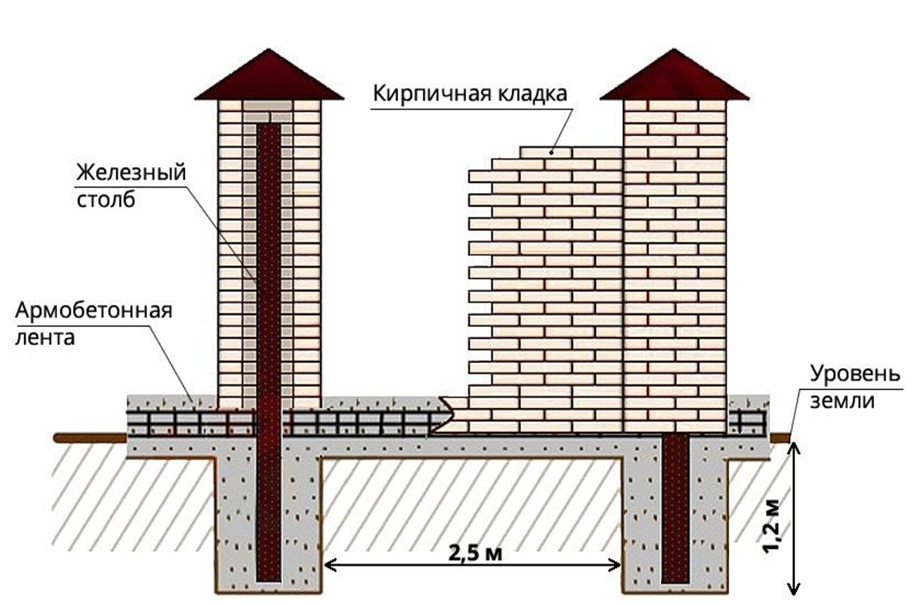 Конструкция кирпичных заборов