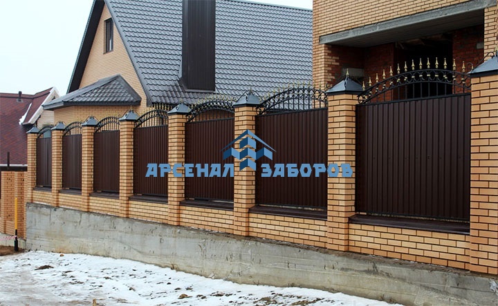 Кирпичный забор на ленточном фундаменте 70 метров